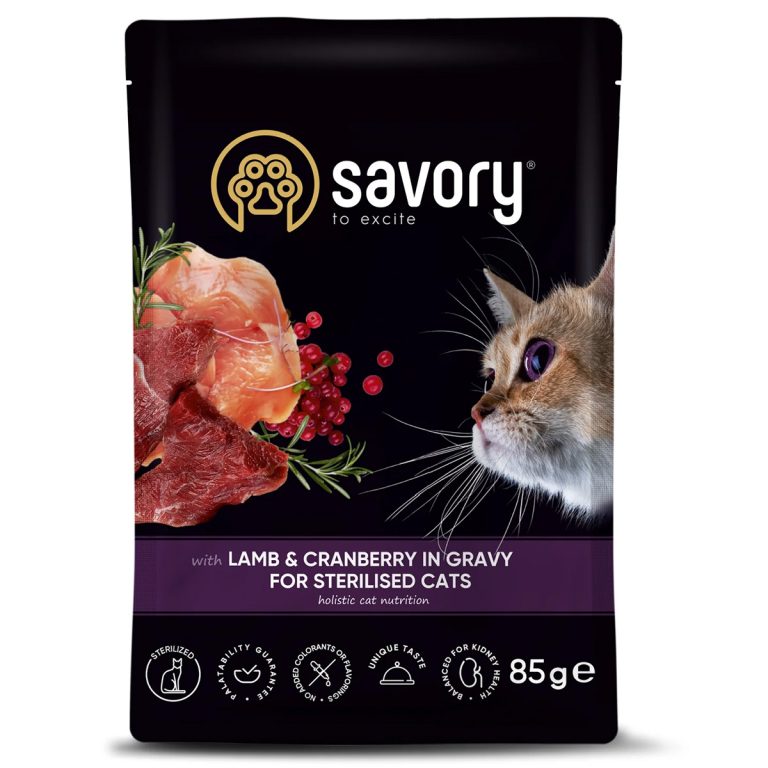 Savory Sterilised Lamb & Cranberry Υγρή Τροφή Για Στειρωμένες Γάτες Αρνί & Κράνμπερι Σε Σάλτσα 85gr