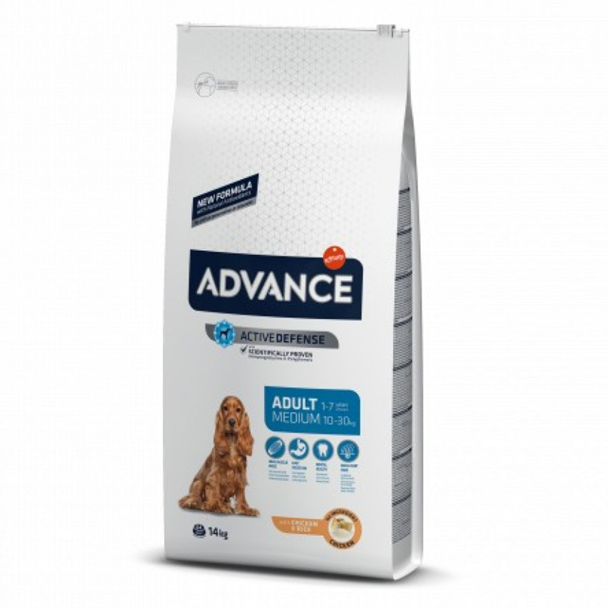 Χάρη στη βέλτιστη περιεκτικότητά της σε πρωτεΐνες, η Advance Medium Adult μπορεί να υποστηρίξει την άλιπη μυϊκή μάζα του σκύλου σας. Περιέχει επίσης απαραίτητα ωμέγα-3 και ωμέγα-6 λιπαρά οξέα, τα οποία μπορούν να συμβάλουν σε ένα φυσιολογικό δέρμα και ένα λαμπερό τρίχωμα. Οι τραγανές κροκέτες δεν είναι μόνο προσαρμοσμένες στα στόματα των μεσαίου μεγέθους σκύλων, αλλά περιέχουν επίσης ένα ειδικό μείγμα μεταλλικών στοιχείων που μπορεί να μειώσει τον κίνδυνο σχηματισμού πέτρας και να προωθήσει την πιο φρέσκια αναπνοή.