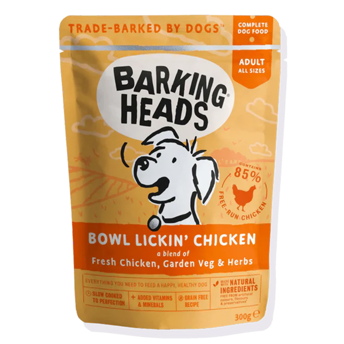 Η τροφή Barking Heads Bowl Lickin’ Chicken μαγειρεύεται αργά μέχρι να αγγίξει τα πόδια του σκύλου, χρησιμοποιώντας φυσικά συστατικά ανθρώπινης ποιότητας από αγρότες που γνωρίζουμε και εμπιστευόμαστε. Αυτή η νόστιμη συνταγή υγρής τροφής για ενήλικες με πρόσθετες βιταμίνες και μέταλλα περιέχει 85% φρεσκοπαρασκευασμένο κοτόπουλο ελευθέρας βοσκής και, ακόμα καλύτερα… δεν περιέχει σιτηρά! Αναμεμειγμένο με έναν πραγματικά νόστιμο συνδυασμό λαχανικών κήπου και βοτάνων, αυτό το δείπνο με κοτόπουλο δεν ονομάζεται «γλείψιμο σε μπολ» άδικα!