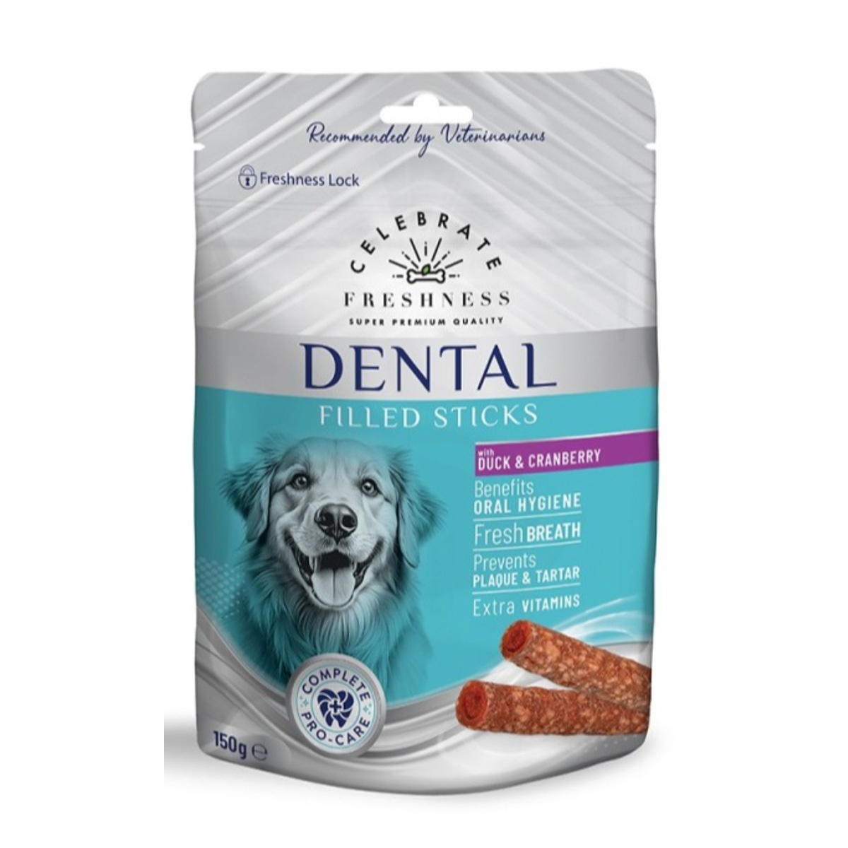 Περιγραφή Οδοντικές λιχουδιές σε μορφή γεμιστών στικ για σκύλους, με πάπια και cranberry, σχεδιασμένες για να προσφέρουν ταυτόχρονα γευστική απόλαυση και καθημερινή υποστήριξη της στοματικής υγιεινής. Η δομή του στικ ενθαρρύνει παρατεταμένο μάσημα, βοηθώντας μηχανικά στον καθαρισμό των δοντιών και συμβάλλοντας στη μείωση της πλάκας και της πέτρας, ενώ παράλληλα υποστηρίζει πιο φρέσκια αναπνοή. Η γεμιστή καρδιά αυξάνει την αποδοχή και κρατά τον σκύλο απασχολημένο περισσότερο χρόνο, κάνοντας το προϊόν ιδανικό για σκύλους που βαριούνται εύκολα τα κλασικά dental snacks. Η πάπια δίνει πλούσια, “premium” γεύση, ενώ το cranberry προσθέτει λειτουργική αξία και ενισχύει το άρωμα. Κατάλληλο ως καθημερινή επιβράβευση ή snack ανάμεσα στα γεύματα, με πρακτική συσκευασία 150gr.