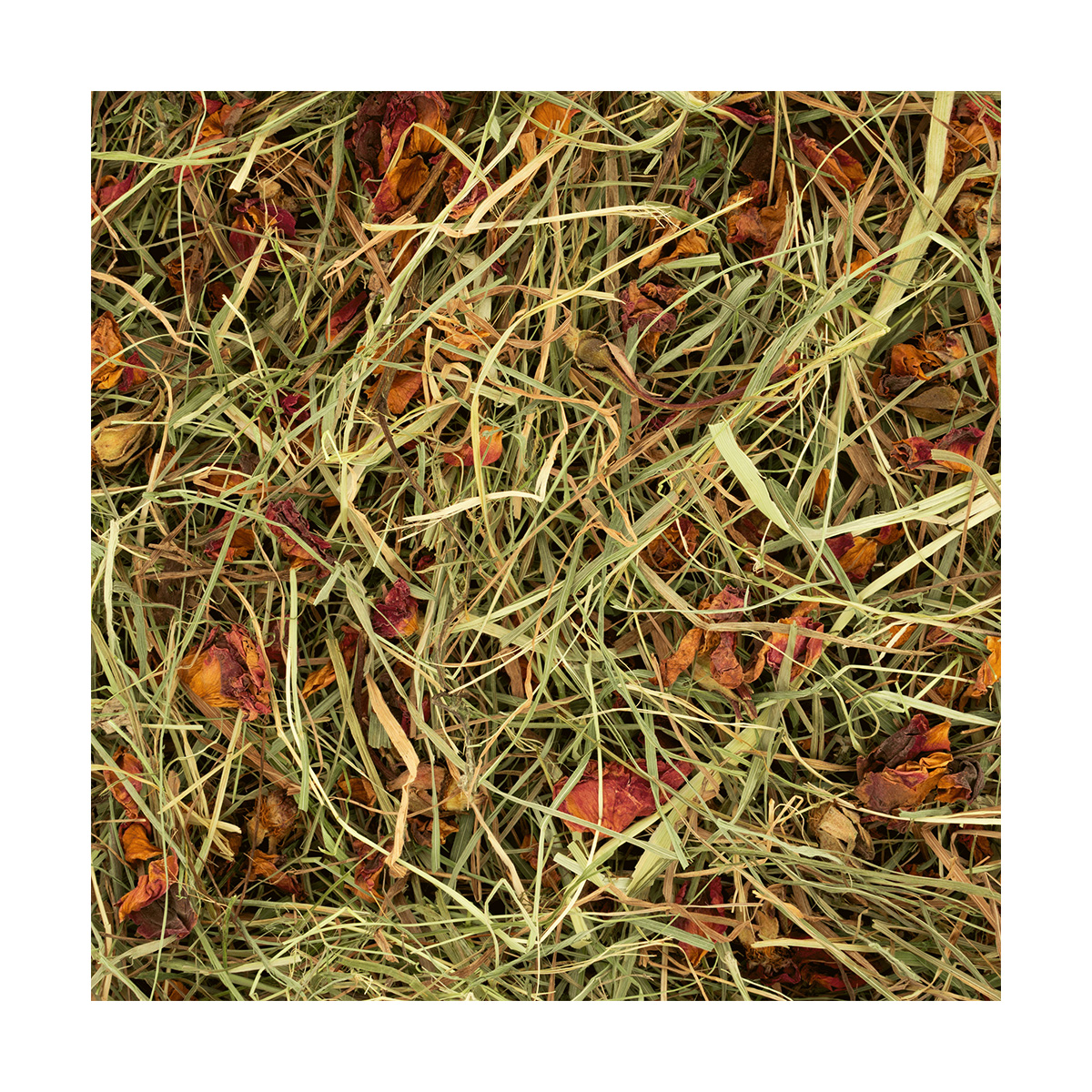Φυτικό σανό, αποξηραμένα άνθη τριανταφυλλιάς (2,5%), αποξηραμένα καλέντουλα (2,5%)