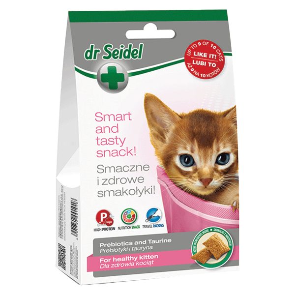 Τα Dr Seidel – Snack Cat – Healthy Kitten είναι υψηλής ποιότητας και εμπλουτισμένα με πρεβιοτικά και ταυρίνη snack, για νεαρής ηλικίας γατούλες. Αντιστοιχούν σε συμπλήρωμα διατροφής για τη γενική ενίσχυση του οργανισμού τους, με σκοπό τη σωστή ανάπτυξη.