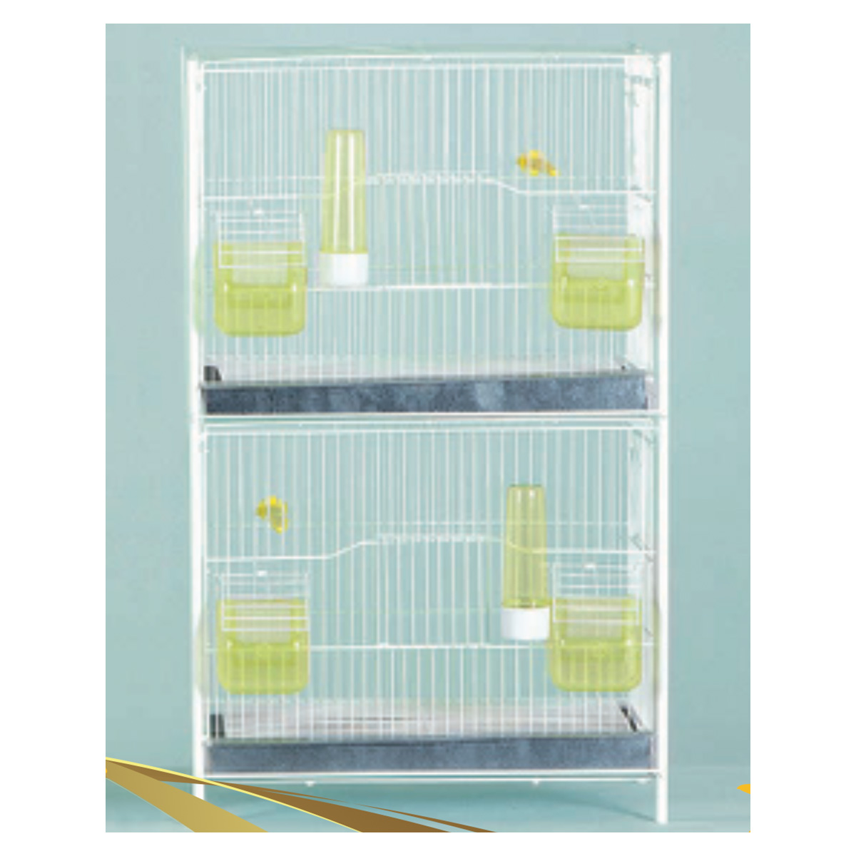 Διπλή ζευγαρώστρα διπλού ορόφου, κατάλληλη για καναρίνια και μικρά ωδικά πτηνά. Διαθέτει δύο ανεξάρτητα επίπεδα φιλοξενίας, επιτρέποντας τον ασφαλή διαχωρισμό ζευγαριών. Ανθεκτική μεταλλική κατασκευή με πλαστική βάση για εύκολο καθαρισμό και πρακτική καθημερινή χρήση.
