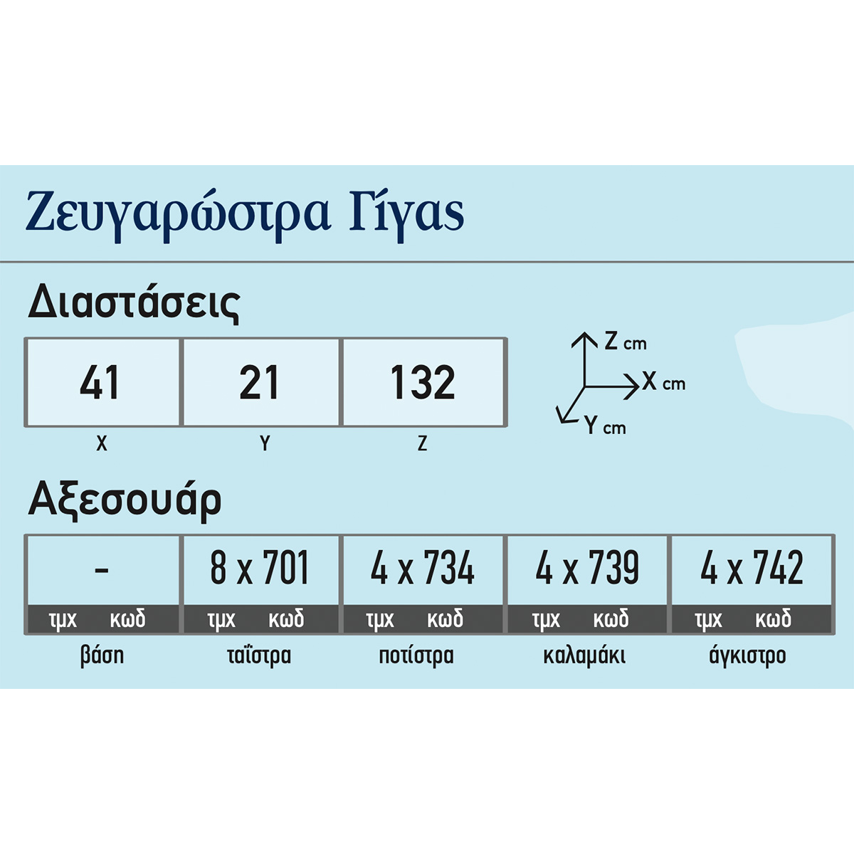 Διαστάσεις41 × 21 × 132 cm