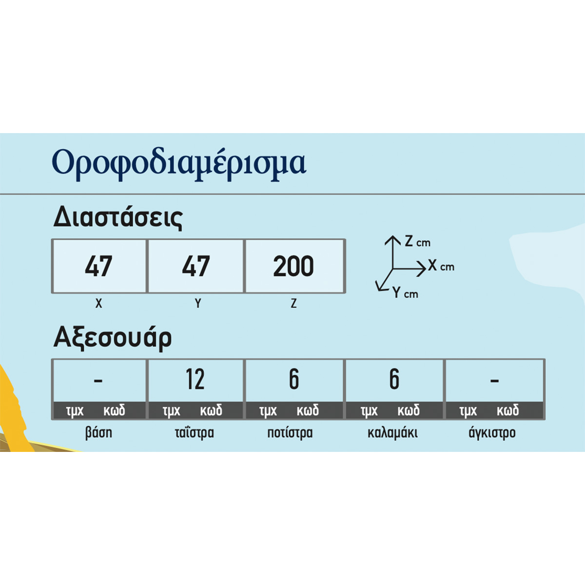 Διαστάσεις 47 × 47 × 200 cm