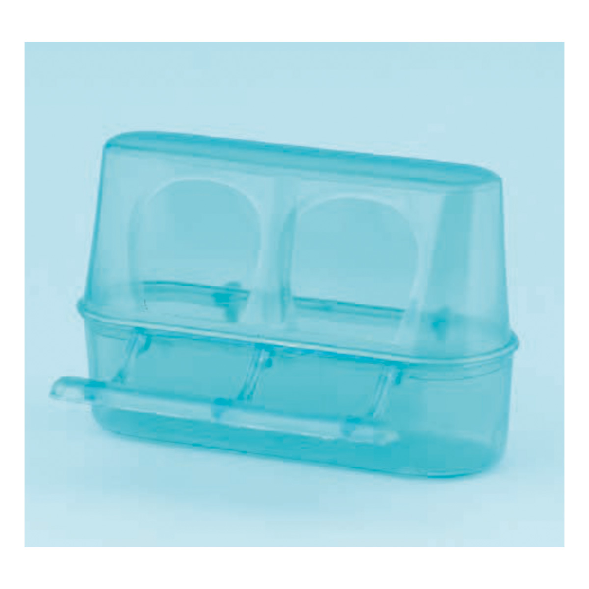 Πλαστική ταΐστρα δύο ματιών της EL PLAST, κατάλληλη για καθημερινή χρήση σε κλουβιά πτηνών. Προσφέρει εύκολη πρόσβαση στην τροφή και συμβάλλει στη σωστή υγιεινή του χώρου.