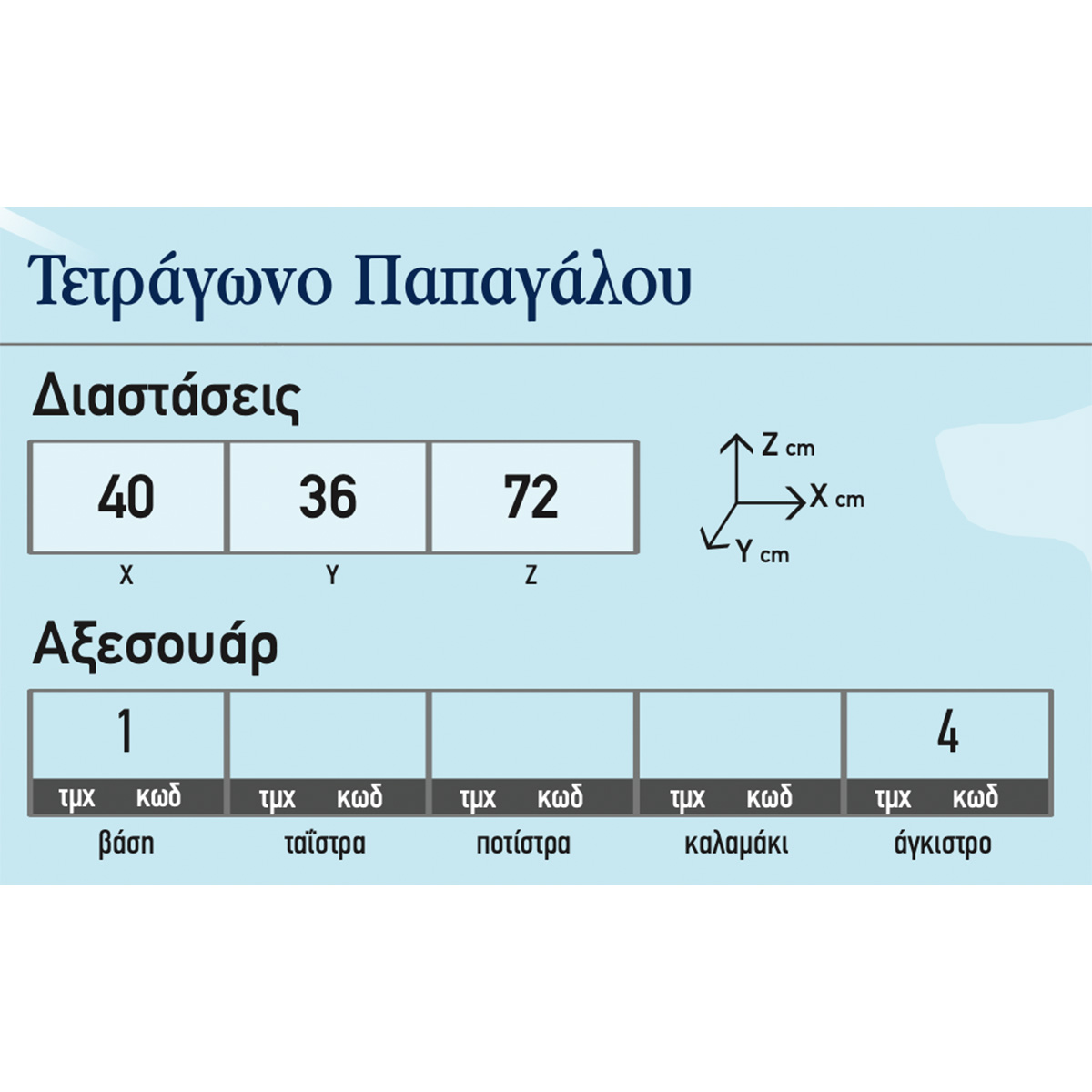 Διαστάσεις 40 × 36 × 72 cm