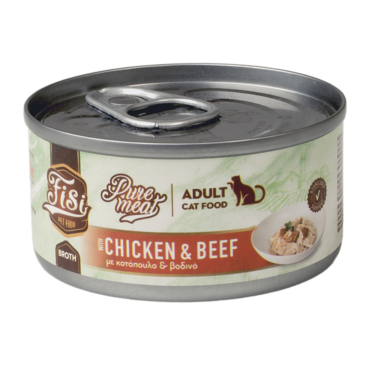 Fisi Cat Adult Pure Meat Chicken Υγρή Τροφή Για Γάτες Κοτόπουλο & Μοσχάρι Σε Ζωμό 80gr