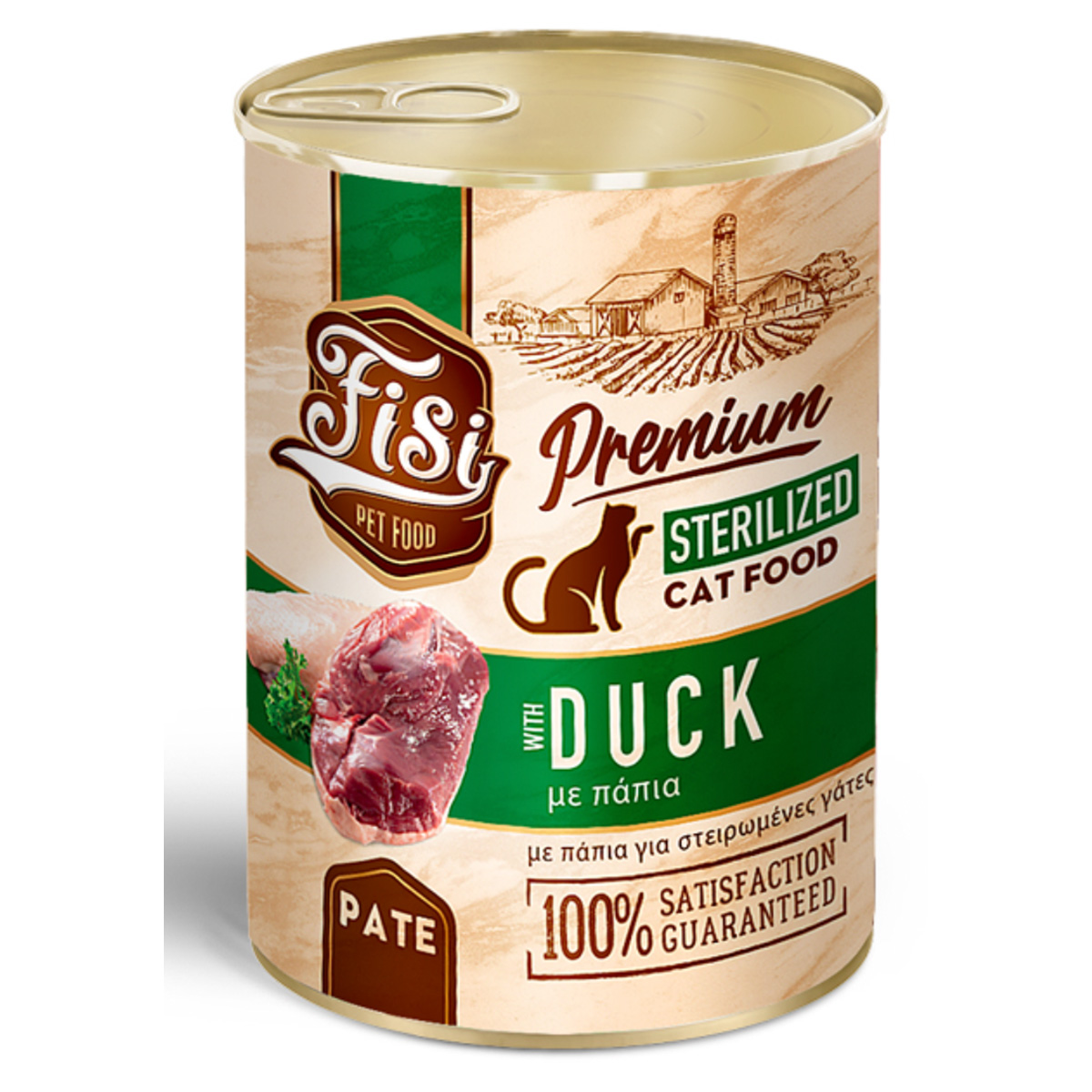 Η φυσική συνταγή Fisi με πάπια σε πατέ για στηρωμένες γάτες είναι μια premium και θρεπτική απόλαυση που θα λατρέψει η γάτα σας.