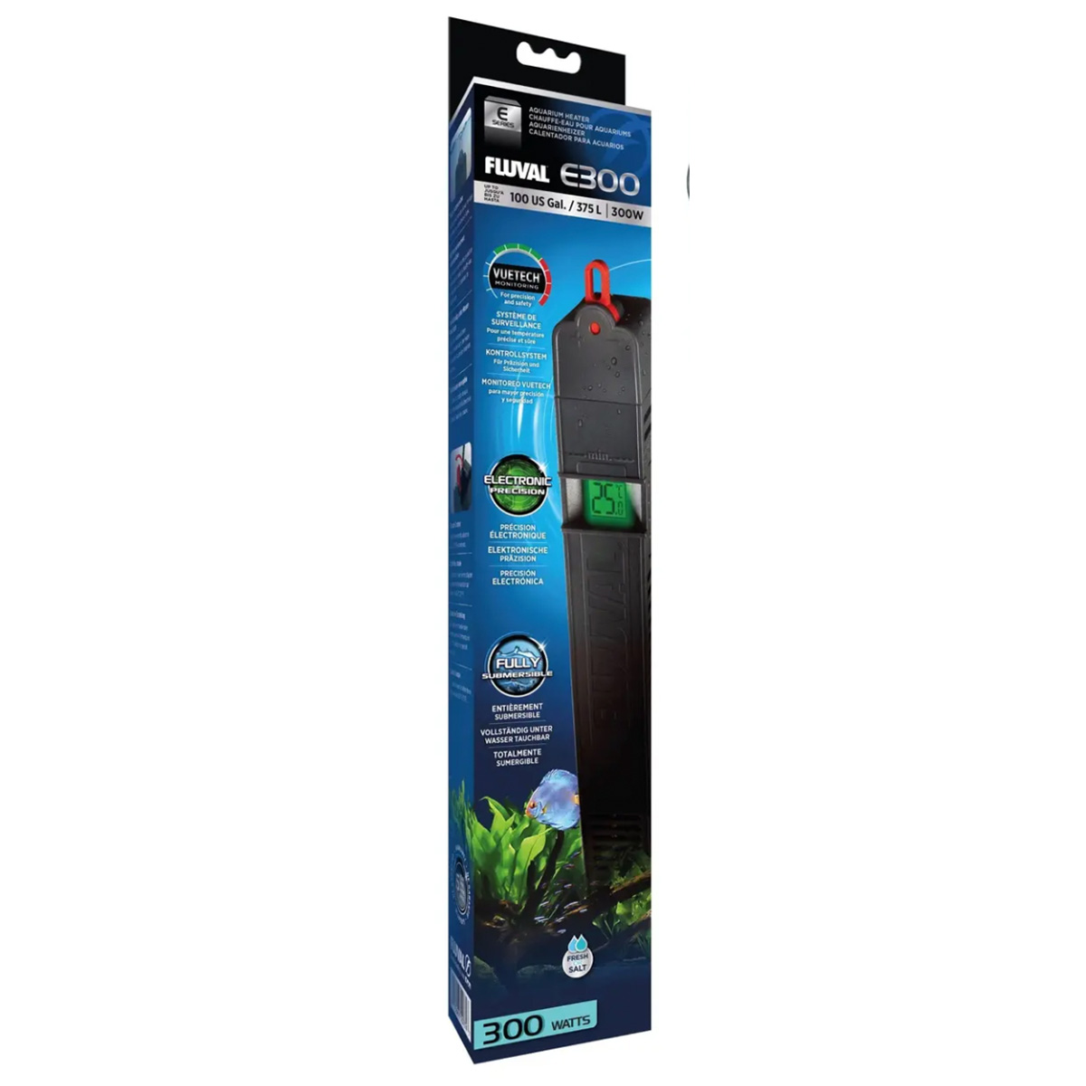 Περιγραφή Ηλεκτρονικός/ψηφιακός υποβρύχιος θερμαντήρας Fluval E300 300W για γλυκό και θαλασσινό νερό, κατάλληλος για ενυδρεία έως περίπου 300 λίτρα. Διαθέτει τεχνολογία VueTech για συνεχή παρακολούθηση θερμοκρασίας και οπτική ένδειξη κατάστασης μέσω χρωματικής αλλαγής στην οθόνη (χαμηλά/ιδανικά/υψηλά), ώστε να ελέγχεις άμεσα τη σωστή λειτουργία. Προσφέρει ακριβή ρύθμιση θερμοκρασίας και ψηφιακή ένδειξη °C/°F, ενώ διαθέτει διπλή προστασία για ασφαλή λειτουργία και προστατευτικό fish guard για να αποφεύγονται επαφές των ψαριών με τη θερμή επιφάνεια. Η λεπτή κατασκευή και η βάση στήριξης με βεντούζες διευκολύνουν τη σταθερή, διακριτική τοποθέτηση μέσα στο ενυδρείο.