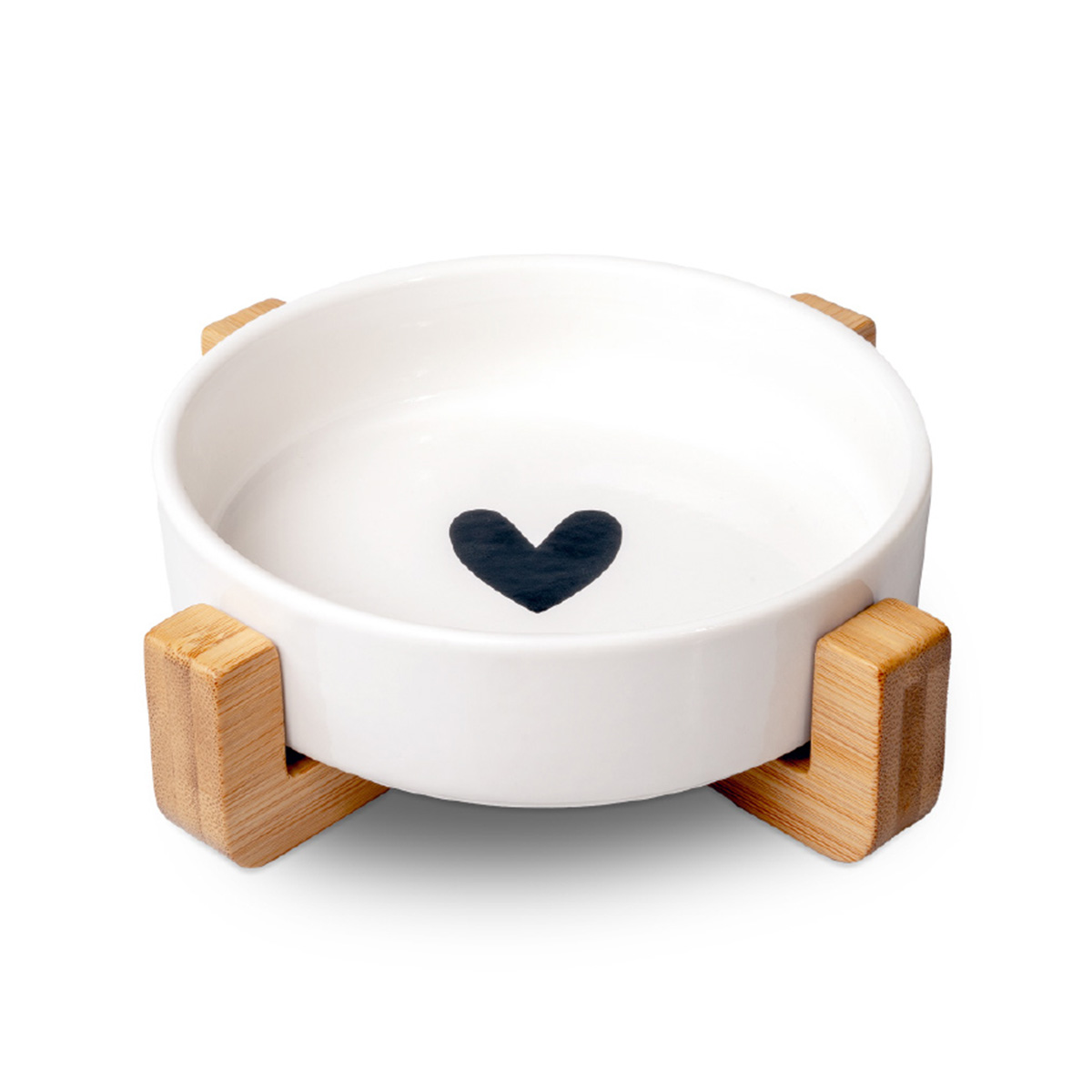 Κεραμικό μπολ φαγητού και νερού για σκύλους και γάτες με σταθερή βάση από bamboo που εμποδίζει το μπολ να μετακινηθεί ή να αναποδογυριστεί κατά τη σίτιση. Η χωρητικότητα 300ml είναι ιδανική για μικρά έως μεσαίου μεγέθους κατοικίδια, ενώ το λευκό χρώμα με διακριτικό σχέδιο προσφέρει κομψή εμφάνιση στον χώρο.