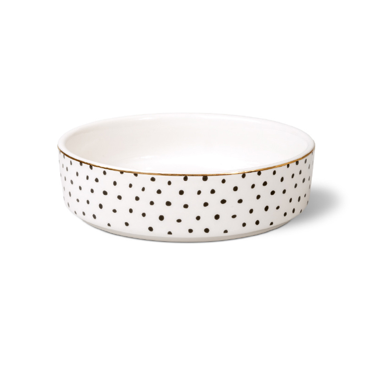 Κεραμικό πιάτο φαγητού με σχέδιο Dots, κατάλληλο για καθημερινή σίτιση κατοικιδίων. Το ανθεκτικό κεραμικό υλικό προσφέρει σταθερότητα και εύκολο καθαρισμό, ενώ μπορεί να χρησιμοποιηθεί και για ζέσταμα τροφής.