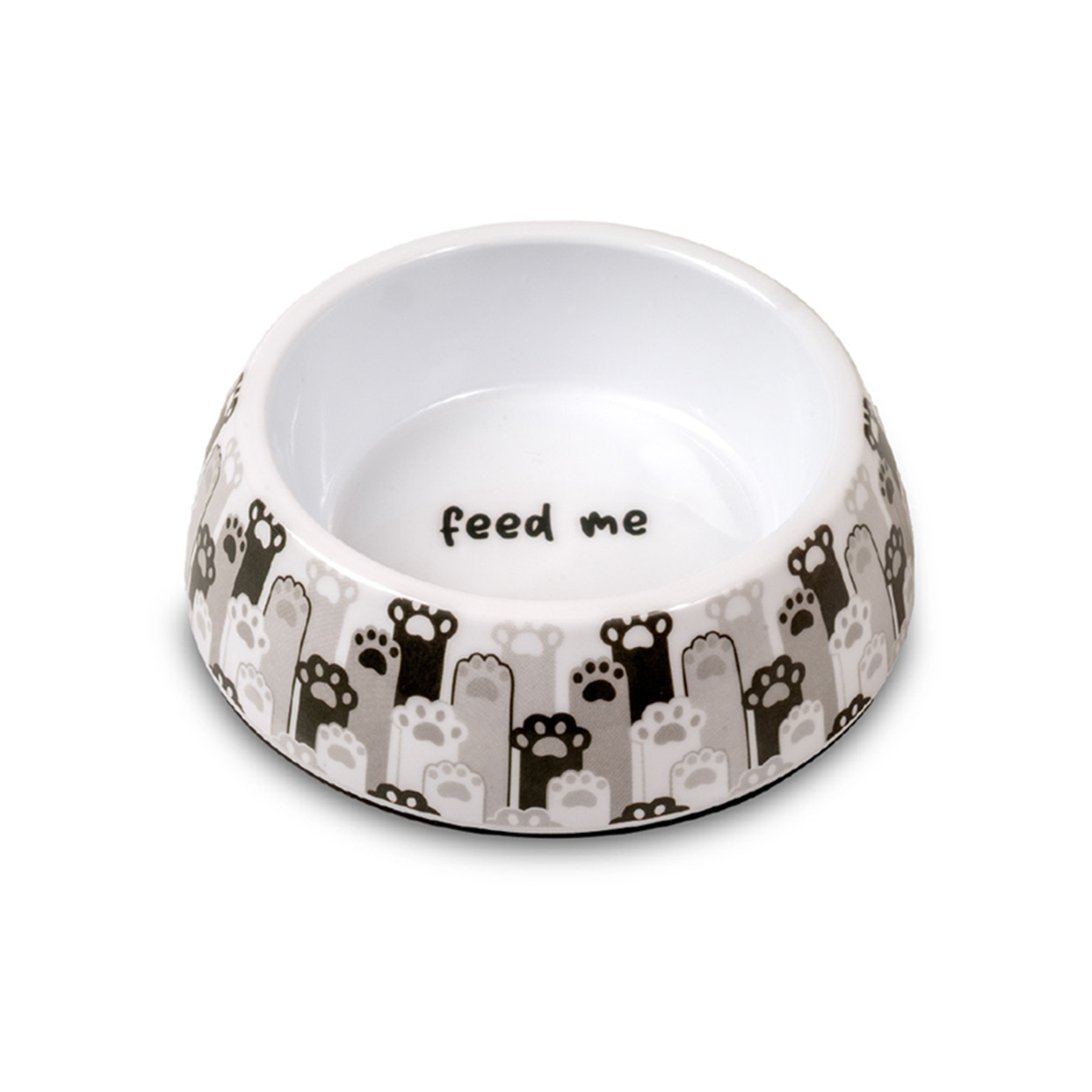 Μεγάλο μπολ φαγητού και νερού από μελαμίνη με σχέδιο Paws, ιδανικό για κατοικίδια μεσαίου έως μεγάλου μεγέθους. Η χωρητικότητα 900ml παρέχει επάρκεια για καθημερινή χρήση, με ανθεκτικό υλικό που προσφέρει εύκολο καθαρισμό και καθημερινή λειτουργικότητα.