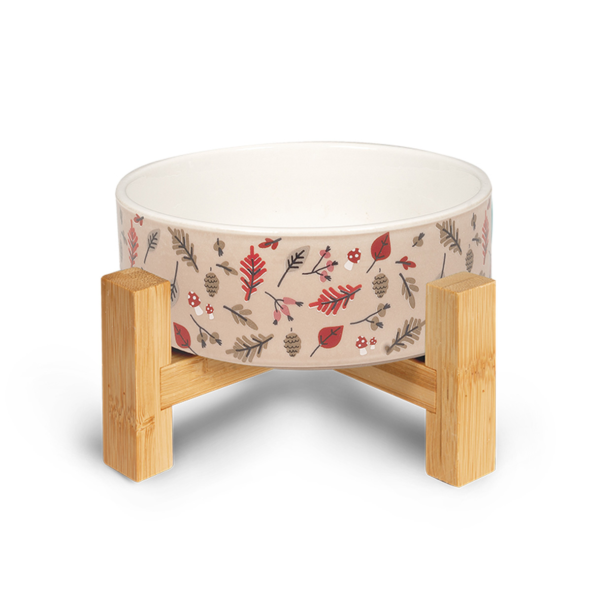 Μικρό κεραμικό μπολ φαγητού και νερού με σταθερή βάση από bamboo που προσφέρει σταθερότητα κατά τη σίτιση και προστατεύει την επιφάνεια του δαπέδου. Ο συνδυασμός ροζ και λευκού χρώματος με μοντέρνο spring σχέδιο δίνει φρέσκια και παιχνιδιάρικη εμφάνιση στον χώρο. Η χωρητικότητα 400ml είναι ιδανική για μικρόσωμα κατοικίδια, εξασφαλίζοντας πρακτική και άνετη καθημερινή χρήση.