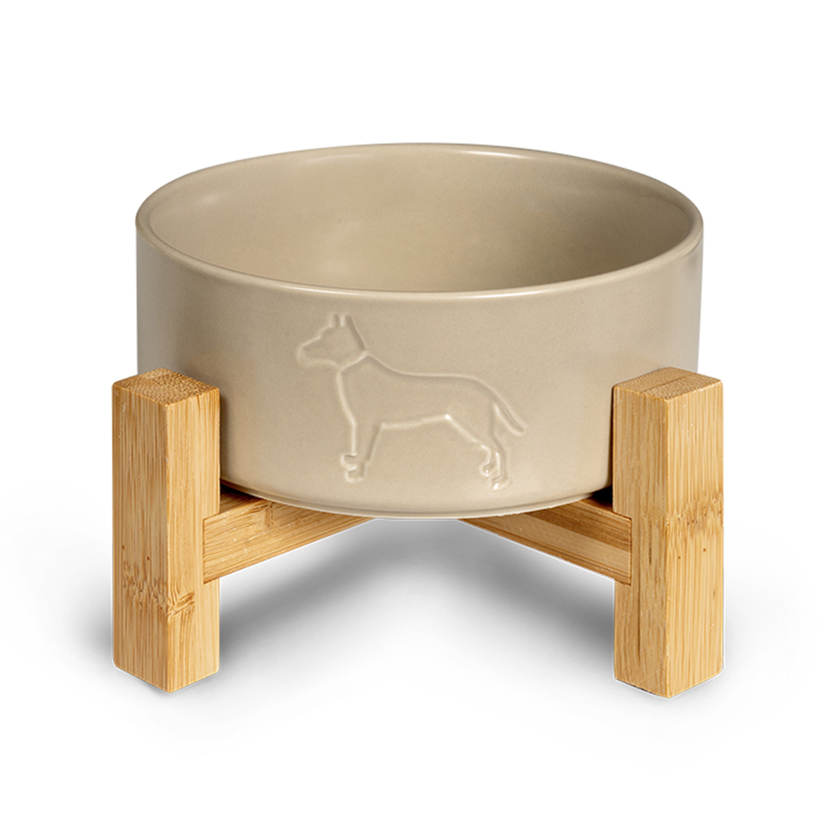 Το Glee Woof Κεραμικό Μπολ με βάση bamboo  είναι σχεδιασμένο για σκύλους και αποτελεί ιδανική λύση για σίτιση ή νερό με στυλ στο σπίτι. Ο κεραμικός κύπελλος είναι σταθερός, ανθεκτικός και εύκολος στον καθαρισμό, ενώ η βάση από φυσικό bamboo του προσδίδει αντιολισθητική σταθερότητα και φυσική αισθητική στο χώρο σας. Κατάλληλο τόσο για τροφή όσο και για νερό, προσφέρει υγιεινή και σταθερή σίτιση χωρίς χημικά επιβλαβή στοιχεία.