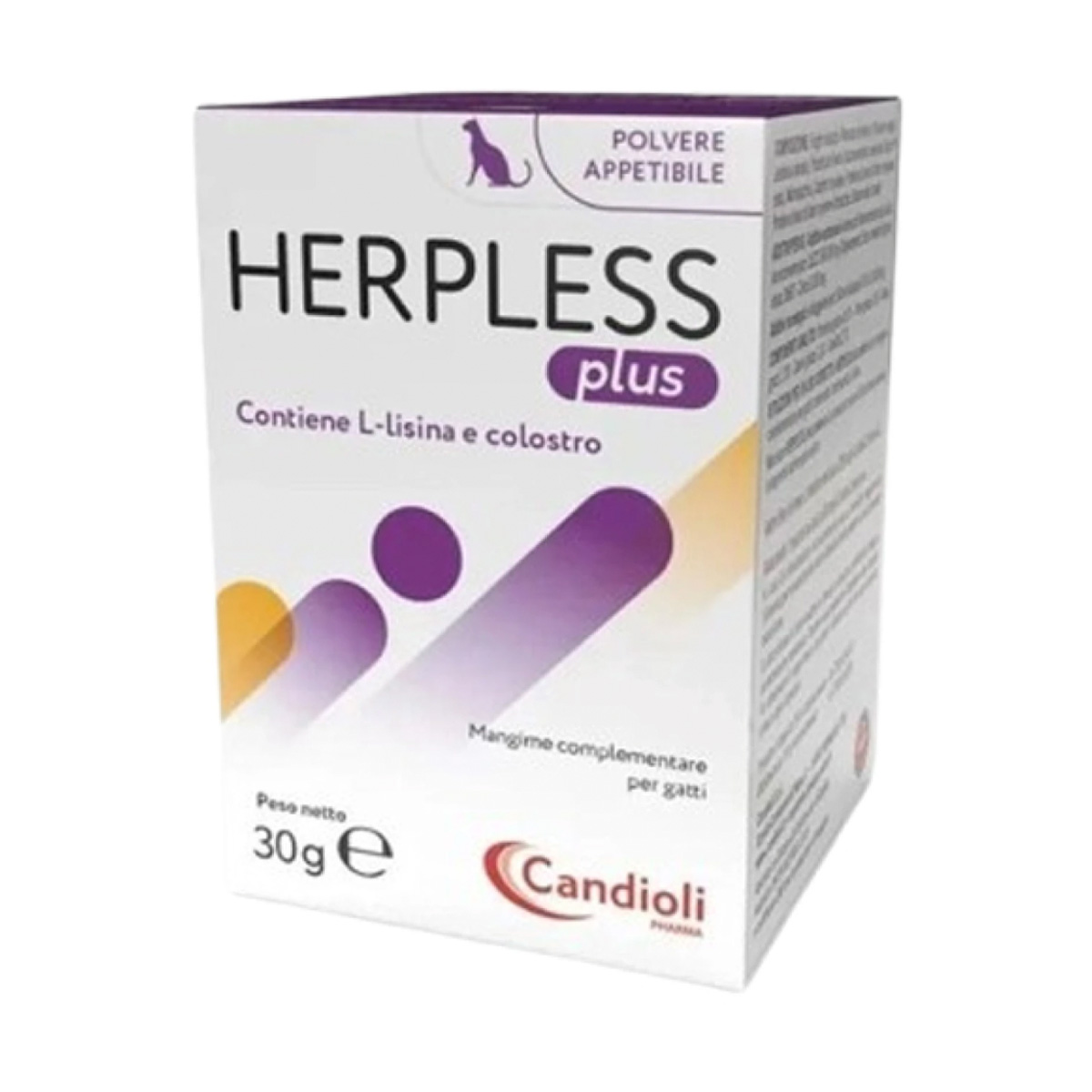 Το Herpless Plus είναι συμπλήρωμα διατροφής σε εύγευστη μορφή σκόνης, ειδικά σχεδιασμένο για γάτες. Περιέχει L-λυσίνη και πρωτόγαλα (colostrum), συστατικά που συμβάλλουν στην υποστήριξη του ανοσοποιητικού συστήματος και στη γενικότερη ενίσχυση του οργανισμού της γάτας, ιδιαίτερα σε περιόδους αυξημένων αναγκών ή στρες. Η μορφή του το καθιστά εύκολο στη χορήγηση, καθώς μπορεί να αναμειχθεί με την τροφή, ενώ η αυξημένη γευστικότητα βοηθά στην αποδοχή του ακόμη και από πιο επιλεκτικές γάτες. Πρόκειται για προϊόν κατάλληλο για καθημερινή χρήση, στο πλαίσιο μιας ισορροπημένης διατροφής.