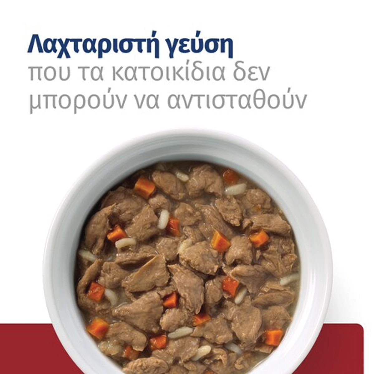 Αυτή η τροφή σε κονσέρβα περιέχει γευστικά κομμάτια μεγέθους μπουκιάς μέσα σε σάλτσα και παρασκευάζεται με υγιεινά συστατικά όπως κοτόπουλο & λαχανικά που οι σκύλοι λατρεύουν.