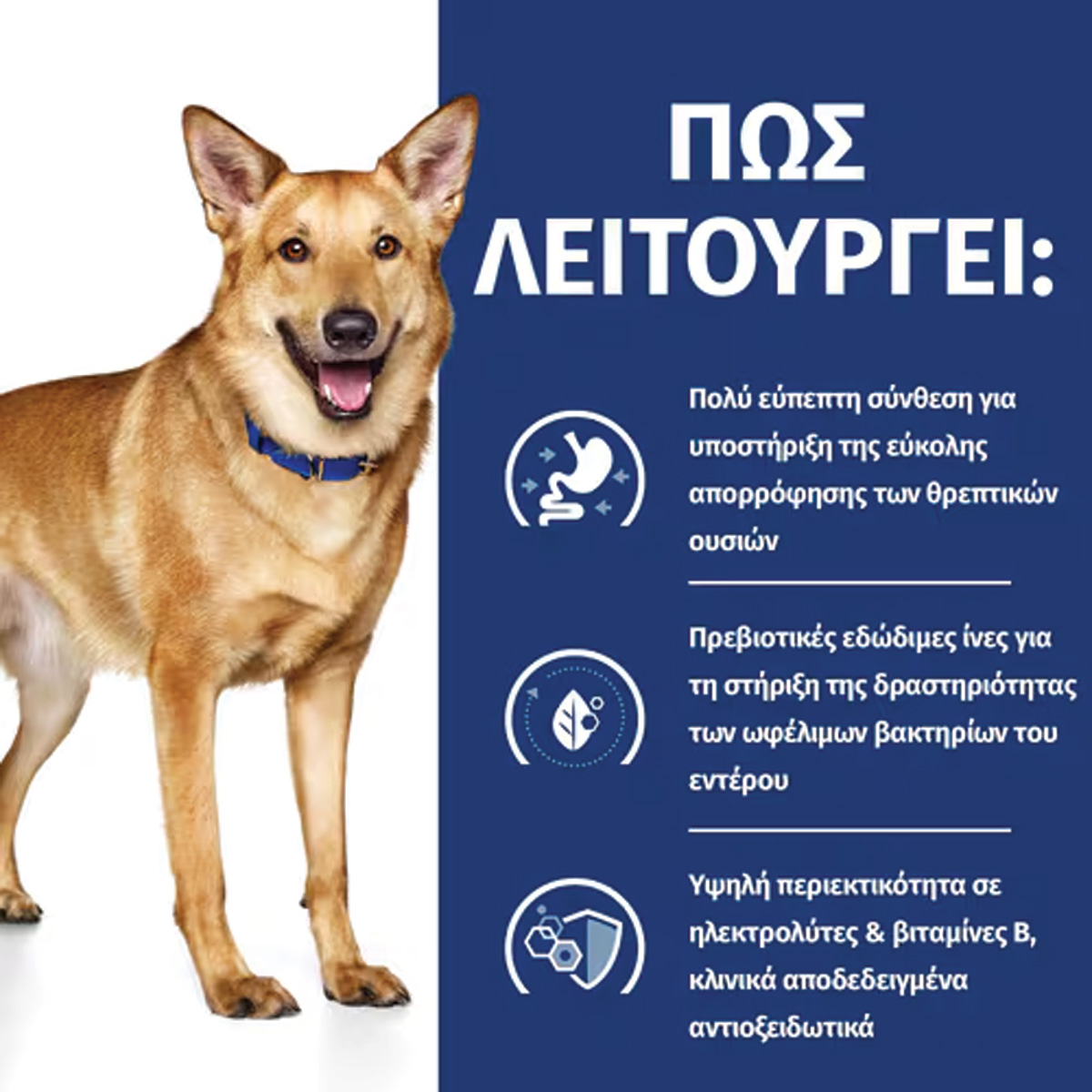 Η τροφή για σκύλους Hill’s Prescription Diet i/d παρέχει όλη τη διατροφή που χρειάζεται ο σκύλος σας. Παρακαλώ, συμβουλευτείτε τον κτηνίατρό σας για περισσότερες πληροφορίες σχετικά με το πώς οι τροφές Prescription Diet μπορούν να βοηθήσουν τον σκύλο σας να συνεχίσει να απολαμβάνει μια ευτυχισμένη και δραστήρια ζωή.