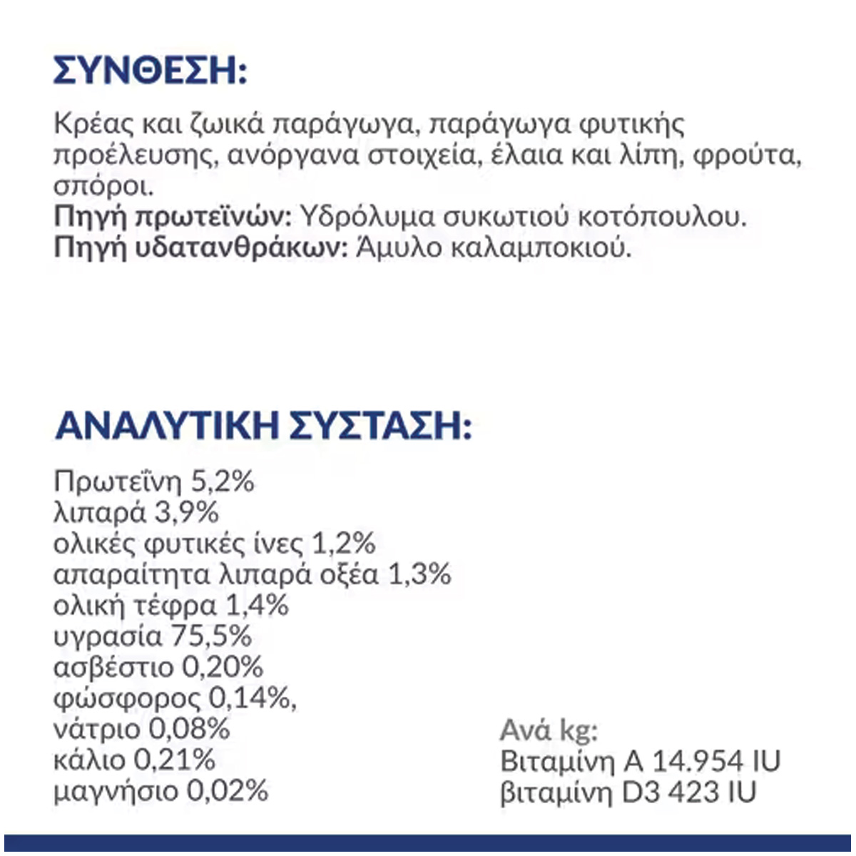 **Χρησιμοποιήστε τη συνιστώμενη δόση που προτείνεται σαν οδηγό και παρακολουθήστε το βάρος του μικρού σας φίλου.