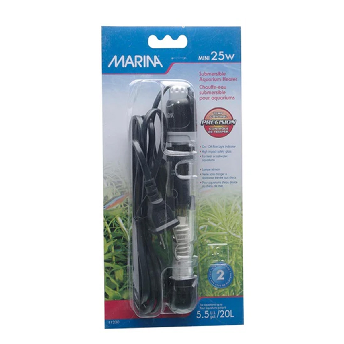 Περιγραφή Υποβρύχιος θερμαντήρας ενυδρείου 25W, κατάλληλος για γλυκό και θαλασσινό νερό, ιδανικός για μικρά ενυδρεία έως περίπου 20 λίτρα. Διαθέτει εύκολα προσβάσιμο ρυθμιστικό θερμοκρασίας με ευανάγνωστες ενδείξεις, ώστε να προσαρμόζεις γρήγορα τη θερμοκρασία στο επιθυμητό επίπεδο. Περιλαμβάνει ενδεικτική λυχνία on/off (pilot light) για άμεση οπτική επιβεβαίωση λειτουργίας, καθώς και προστατευτικό bumper guard για μεγαλύτερη ασφάλεια των ψαριών. Είναι κατασκευασμένος από ανθεκτικό γυαλί υψηλής αντοχής σε χτυπήματα και διαθέτει αδιάβροχη στεγανοποίηση. Συνοδεύεται από βάση στήριξης με βεντούζες για σταθερή και ασφαλή τοποθέτηση μέσα στο ενυδρείο, ενώ το καλώδιο τροφοδοσίας έχει μήκος περίπου 1,8 m.