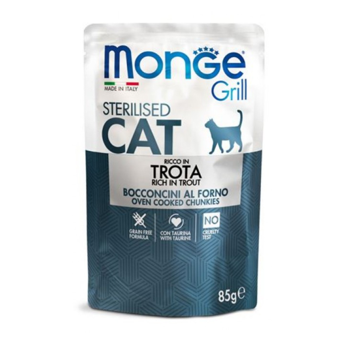 Περιγραφή Πλήρης υγρή τροφή για ενήλικες στειρωμένες γάτες σε κομματάκια μέσα σε ζελέ, με υψηλή γευστικότητα και ήπιο θαλασσινό άρωμα. Η συνταγή είναι σχεδιασμένη ώστε να υποστηρίζει τη διατήρηση φυσιολογικού βάρους, με χαμηλότερα λιπαρά σε σχέση με τυπικές υγρές τροφές, κάτι ιδιαίτερα χρήσιμο σε στειρωμένες γάτες. Η πέστροφα λειτουργεί ως κύρια ζωική πηγή πρωτεΐνης, προσφέροντας εύπεπτη πρωτεΐνη και φυσικά ωμέγα λιπαρά που συμβάλλουν στη καλή κατάσταση δέρματος και τριχώματος. Το ζελέ βοηθά στην πρόσληψη υγρών και κάνει το γεύμα πιο ελκυστικό, ενώ η ισορροπημένη σύνθεση με ταυρίνη, βιταμίνες και ιχνοστοιχεία καλύπτει τις καθημερινές ανάγκες μιας ενήλικης γάτας.