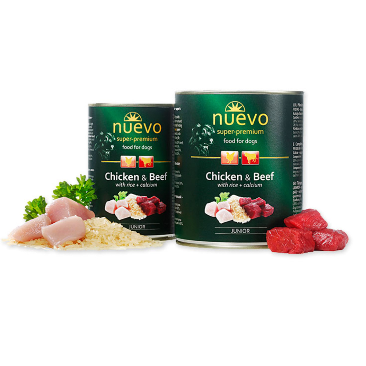 Nuevo Dog Junior 400gr Κοτόπουλο, Μοσχάρι, Ρύζι Και Ασβέστιο 400grSuper Premium Adult Υγρή Τροφή Σε Κονσέρβα