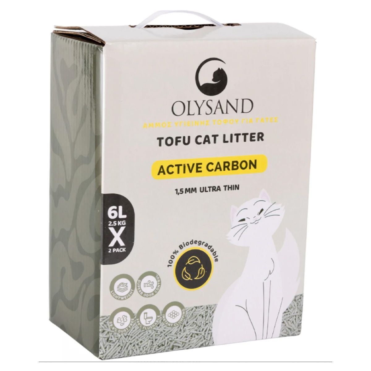 Άμμος – Πέλλετ Γάτας Olysand Tofu Clumping Active Carbon 12lt (2x6lt).