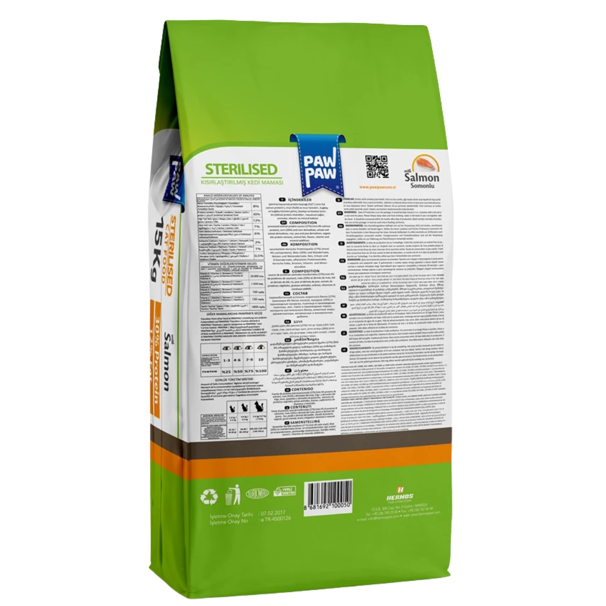 Πηγή επεξεργασμένης ζωικής πρωτεΐνης (27%) (τουλάχιστον 4% πρωτεΐνη σολομού), καλαμπόκι (20%) και παράγωγα καλαμποκιού, σιτάρι και παράγωγα σιταριού, ρύζι, εκχυλίσματα φυτικών πρωτεϊνών, ζωικά λίπη, αρώματα, πρόσθετα βιταμινών και μετάλλων