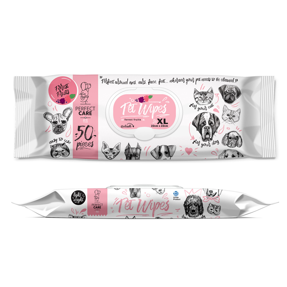 Perfect Care Pet Wipes XL Forest Fruits Υγρά Μαντηλάκια Άρωμα Φρούτα Του Δάσους 50τμχ