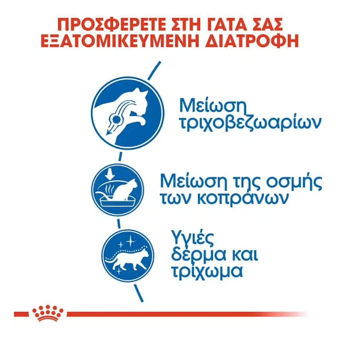 H ROYAL CANIN® Indoor Long Hair είναι ειδικά σχεδιασμένη με όλες τις διατροφικές ανάγκες της μακρύτριχης γάτας που ζει σε εσωτερικό χώρο κατά νου. H ROYAL CANIN® Indoor Long Hair βοηθά στην τόνωση της διαδικασίας πέψης και στην εξάλειψη της κατάποσης των μαλλιών. Αυτό είναι ιδιαίτερα ευεργετικό για τις μακρύτριχες γάτες, καθώς είναι πιο ευαίσθητες στο σχηματισμό τριχοβεζωαρίων. H ROYAL CANIN® Indoor Long Hair περιέχει επίσης εξαιρετικά εύπεπτες πρωτεΐνες για να βοηθήσει όχι μόνο να μειώσει την ποσότητα των κοπράνων, αλλά και την οσμή κατά πολύ. Το EPA και το DHA (Ωμέγα-3 λιπαρά οξέα) περιλαμβάνονται στη ROYAL CANIN® Indoor Long Hair για την υποστήριξη υγιούς δέρματος και γυαλιστερού τριχώματος. Διατίθενται επίσης ποικιλίες του ROYAL CANIN® Indoor ξηρή τροφή, ανάλογα με τον τρόπο ζωής, την εμφάνιση και την ηλικία της γάτας σας: • Indoor 27 • Indoor Appetite Control • Indoor 7+