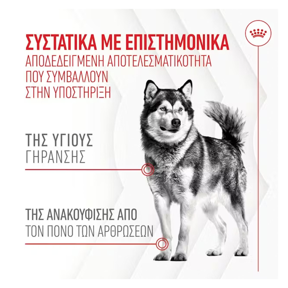 Κείμενο σειράς προϊόντων: Τα νόστιμα, μασώμενα συμπληρώματα της ROYAL CANIN® είναι ειδικά σχεδιασμένα με επιστημονικά μελετημένα συστατικά, ώστε να υποστηρίζουν τις μεταβαλλόμενες ανάγκες των σκύλων και να συμβάλλουν στη διατήρηση της συνολικής υγείας τους, τόσο εσωτερικά όσο και εξωτερικά.