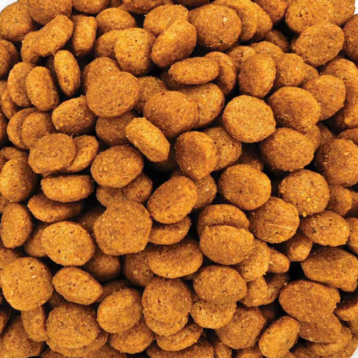 Πρωτεΐνη πουλερικών (αποξηραμένη), καλαμπόκι, απομονωμένη φυτική πρωτεΐνη, λιγνοκυτταρίνη, γλουτένη καλαμποκιού, ζωικό λίπος, ζωική πρωτεΐνη (υδρολυμένη), σιτάρι, ρύζι, πολτός τεύτλων, μαγιά, μεταλλικά στοιχεία, ιχθυέλαιο, φρουκτο-ολιγοσακχαρίτες, σογιέλαιο