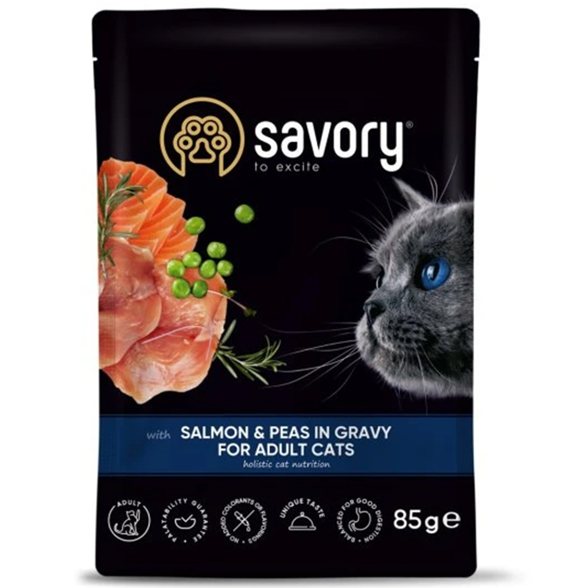 Savory Adult Salmon & Peas Υγρή Τροφή Για Γάτες Σολομός & Αρακάς Σε Σάλτσα 85gr