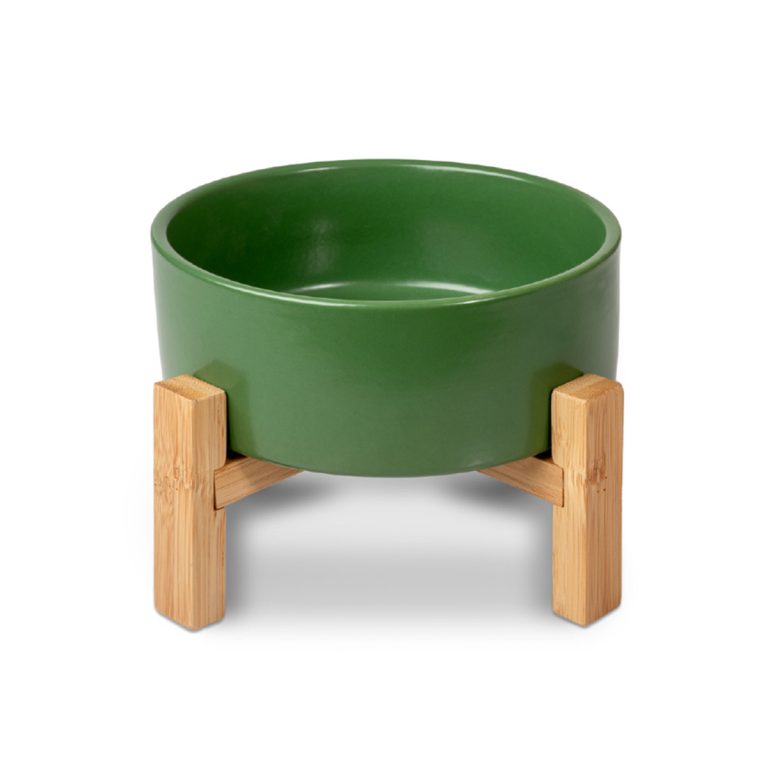 Glee Luxury Medium Κεραμικό Μπολ Με Βάση Bamboo Πράσινο Για Σκύλους & Γάτες 800ml
